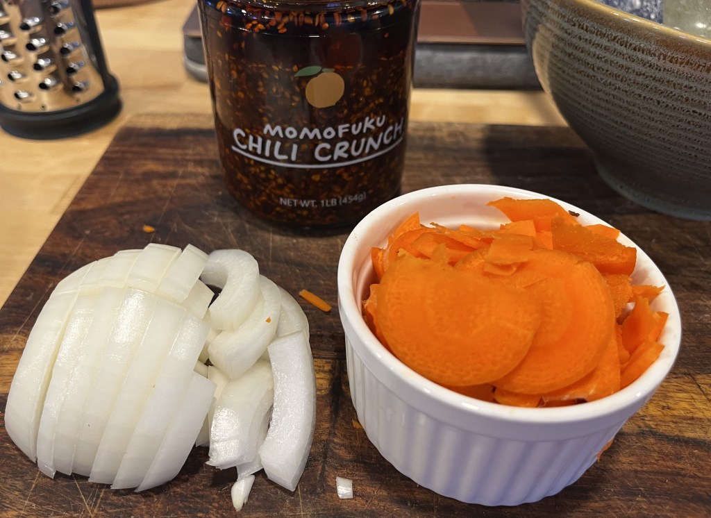 I also had shrimp in the freezer, but since I found some Bang Bang shrimp sauce in the refrigerator, so I opted for shrimp with that sauce and kept the pad Thai vegetarian.